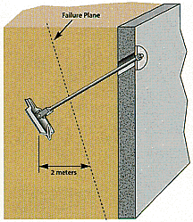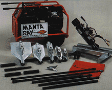 The anchors are driven with conventional hydraulic/pneumatic equipment that is readily available worldwide. Once driven to the proper depth, the rod/tendon attached to the anchor is pulled to rotate the anchor into undisturbed soil – like a toggle bolt. This is called “ANCHOR LOCKING” the anchor (using the MANTA RAY Anchor Locker). The anchor is pulled upon to reach the holding capacity required which is measured by a gauge on the “ANCHOR LOCKER.” Each anchor is immediately proof loaded to the exact capacity required. No other system offers this feature.
